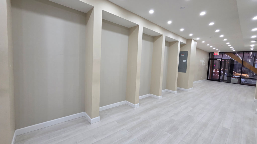 The space features a classic New York boutique layout with a clean, modern interior and strong street presence, with kitchen and two separate rooms besides the main area.